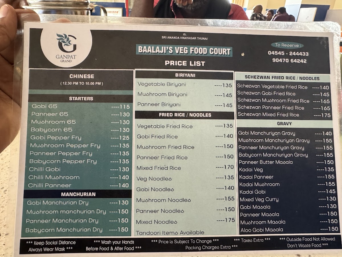 Next time you’re in Palani, don't miss the opportunity to enjoy a meal at Balaji's Food Court, where quality food meets genuine hospitality in every dish!